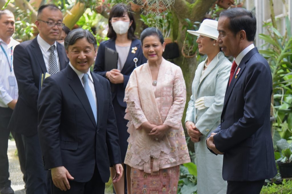 “Suatu kehormatan bagi saya dan Ibu Negara menyambut kedatangan Sri Baginda Kaisar dan Sri Baginda Permaisuri Jepang di Istana Kepresidenan Bogor, Indonesia, pada pagi hari ini,” ucapnya.