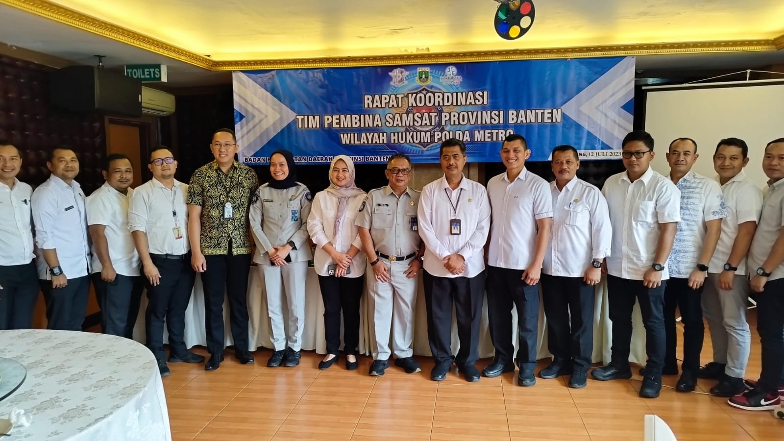 Tangerang – Badan Pendapatan Daerah Provinsi Banten melaksanakan Rapat Koordinasi bersama Tim Pembina Samsat di Wilayah Hukum Polda Metro Jaya pada Rabu, 12 Juli 2023 di Restaurant Isatana Nelayan Tangerang Provinsi Banten. Kegiatan ini dihadiri oleh Tim Pembina Samsat yaitu Kompol Akasa Rambing, SH, SIK, MH selaku Kasi STNK Subdit Regident Ditlantas Polda Metro Jaya, Kurnia Indrawan, S.Kom selaku Kepala Bagian Operasional PT. Jasa Raharja Cabang Banten, Iswandi Saptaji, SP., M.Si, selaku Kepala Bidang Pengelolaan Pendapatan Daerah Provinsi Banten dan Perwakilan dari Pejabat serta pegawai di lingkungan Badan Pendapatan Daerah Provinsi Banten serta para Kanit Regident di wilayah Samsat Polda Metro Jaya yang ada di Provinsi Banten.
