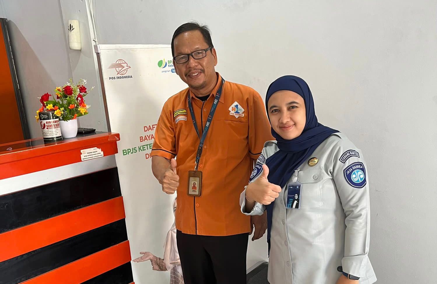 Serang – Petugas Jasa Raharja Cabang Banten yang bertugas di Samsat Gerai Petir, Risa Puspita Wijaya melakukan kunjungan ke Perusahaan BUMN PT. POS INDONESIA Kcp Petir, Kabupaten Serang. Kedatangan Petugas Jasa Raharja di PT. POS INDONESIA Kcp Petir disambut baik oleh Bapak Rohmat Sebagai Brand Manager di Kantor PT. POS INDONESIA Kcp Petir. Kamis, (20/7/23).