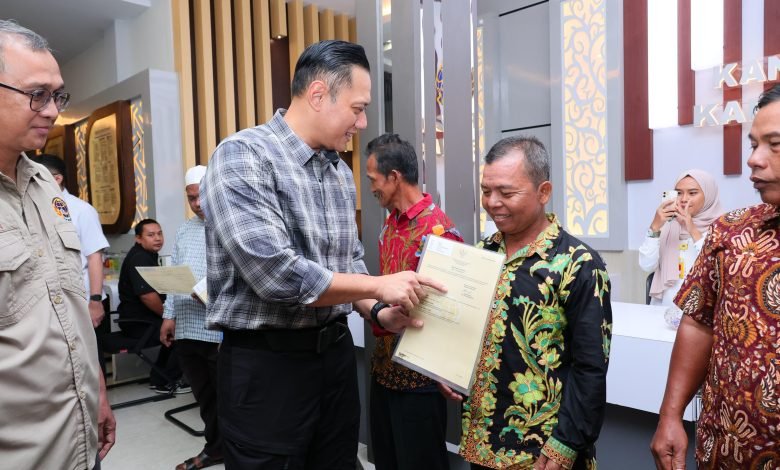 Kubu Raya, Sundapost.co.id – Menteri Agraria dan Tata Ruang/Kepala Badan Pertanahan Nasional (ATR/BPN), Agus Harimurti Yudhoyono (AHY) menyerahkan sepuluh Sertipikat Tanah Elektronik milik masyarakat di Kantor Pertanahan Kabupaten Kubu Raya pada Sabut (22/06/2024). Penyerahan sertipikat di Kabupaten Kubu Raya ini merupakan pertama kalinya Sertipikat Tanah Elektronik diterapkan di Provinsi Kalimantan Barat.