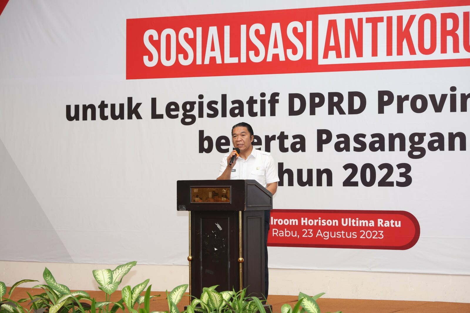 Kota Serang, Sundapost.co.id – Penjabat (Pj) Gubernur Banten Al Muktabar membuka kegiatan Sosialisasi Antikorupsi untuk Legislatif DPRD Provinsi Banten beserta Pasangan Tahun 2023 di Hotel Horison Ultima Ratu, Jl. K.H. Abdul Hadi, Kota Serang, Rabu (23/8/2023). Kegiatan ini merupakan rangkaian yang dilakukan oleh Inspektorat Provinsi Banten bersama dengan KPK dan penyuluh antikorupsi.
