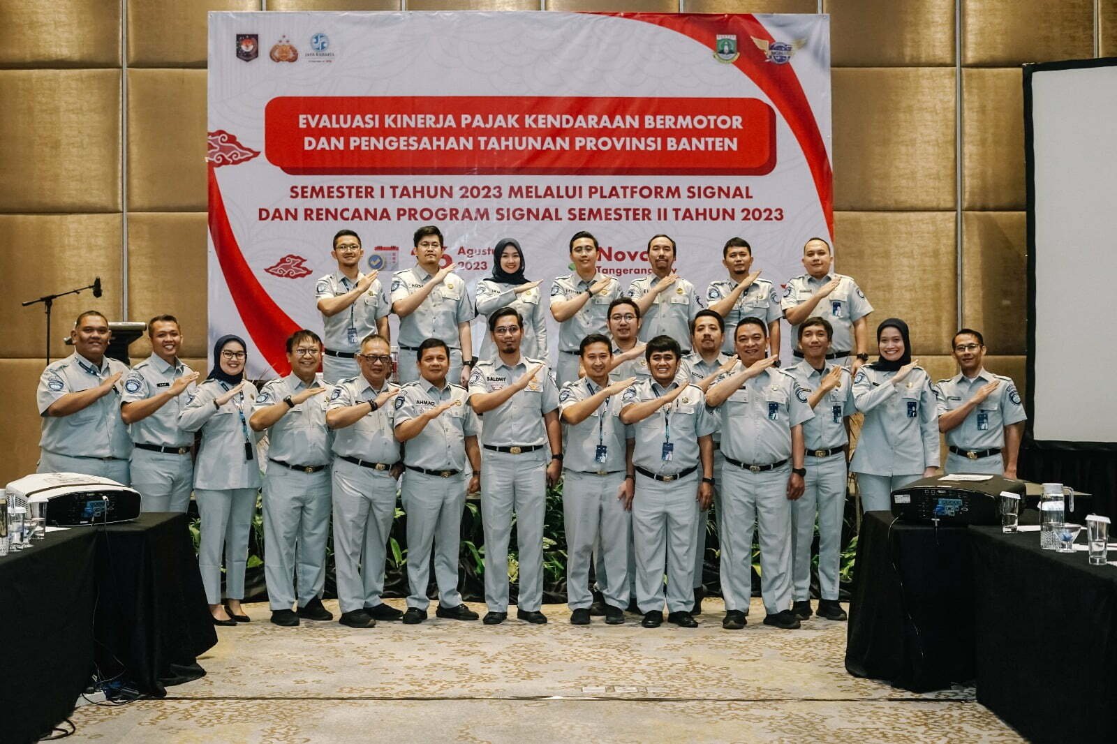 Kegiatan evaluasi ini dihadiri oleh Plt. Kepala Bapenda Provinsi Banten Drs. Deni Hermawan, M. Si. Kasubdit STNK Kombes Pol Prianto, SIK, M. Si. Kepala Divisi Asuransi PT. Jasa Raharja yang diwakili oleh Kepala Urusan Sumbangan Wajib Ahmad Alfansuri Situmeang, SE, MM. Tujuan utama pertemuan ini adalah membahas Langkah-langkah kolaboratif guna meningkatkan pelayanan elektronik SIGNAL dapat berjalan dengan baik dan memudahkan masyarakat dengan menyediakan platform layanan digital.