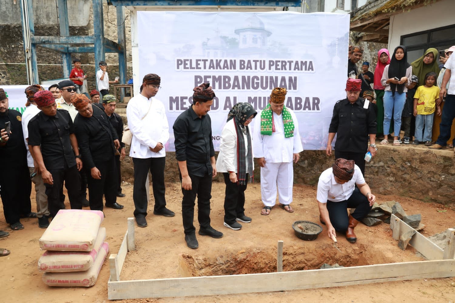 Usai upacara adat digelar, rombongan melakukan peletakan batu pertama pembangunan Mesjid Al Muktabar.