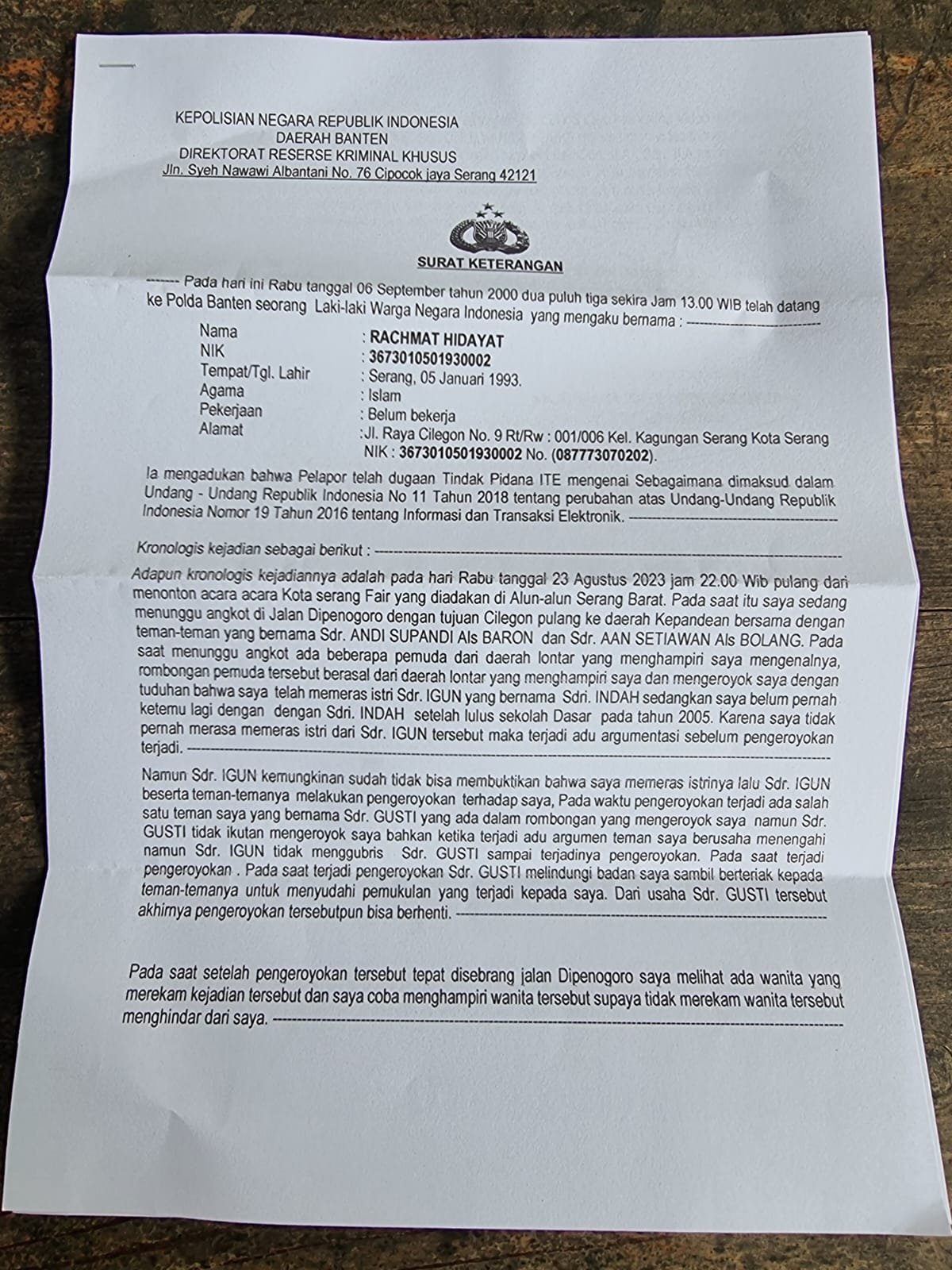 Merasa tidak ada itikad baik, pada Rabu (6/9) melaporkan akun tersebut ke Ditreskrimsus Subdit V Polda Banten, dengan didampingi kuasa hukumnya Dedi Yulfris. Dan diterima oleh Bintara Piket Aditya Tampomas Jiwandono. “Alhamdulillah laporan kami langsung diterima oleh pihak Polda. Dan dari diskusi kami dengan pihak Polda, yang bersangkutan dapat dikenai Pasal 27 Ayat 3 Undang-undang ITE,” ucap Dedi. (Pay)