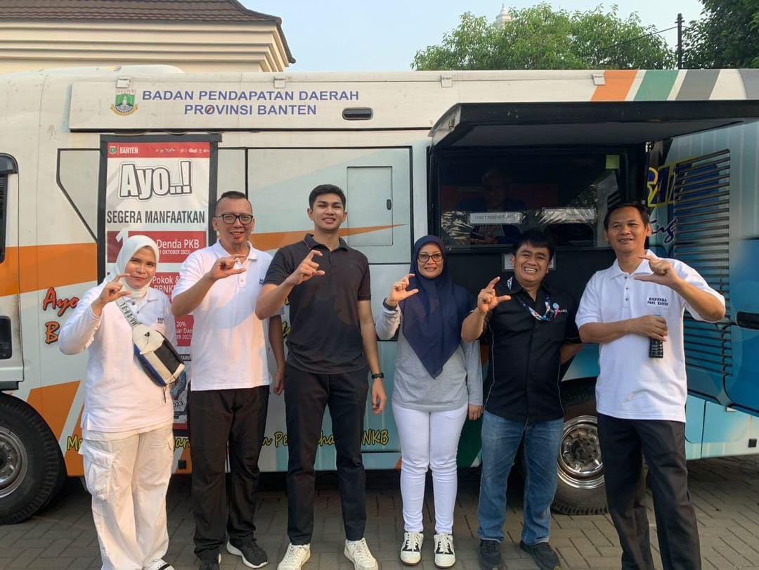 Serang – Dalam rangka memperingati Hari Jadi Provinsi Banten yang ke-23, Tim Pembina Samsat Provinsi Banten melalui Samsat Kota Serang berpartisipasi menyediakan pelayanan Samsat Keliling (Samling) bagi masyarakat yang ingin membayar pajak kendaraan di Hari Minggu, 8 Oktober 2023 bertempat di Kawasan Pusat Pemerintahan Provinsi Banten (KP3B). Kegiatan ini merupakan bentuk dukungan terhadap Pemerintah Daerah Provinsi Banten guna meningkatkan pendapatan daerah.