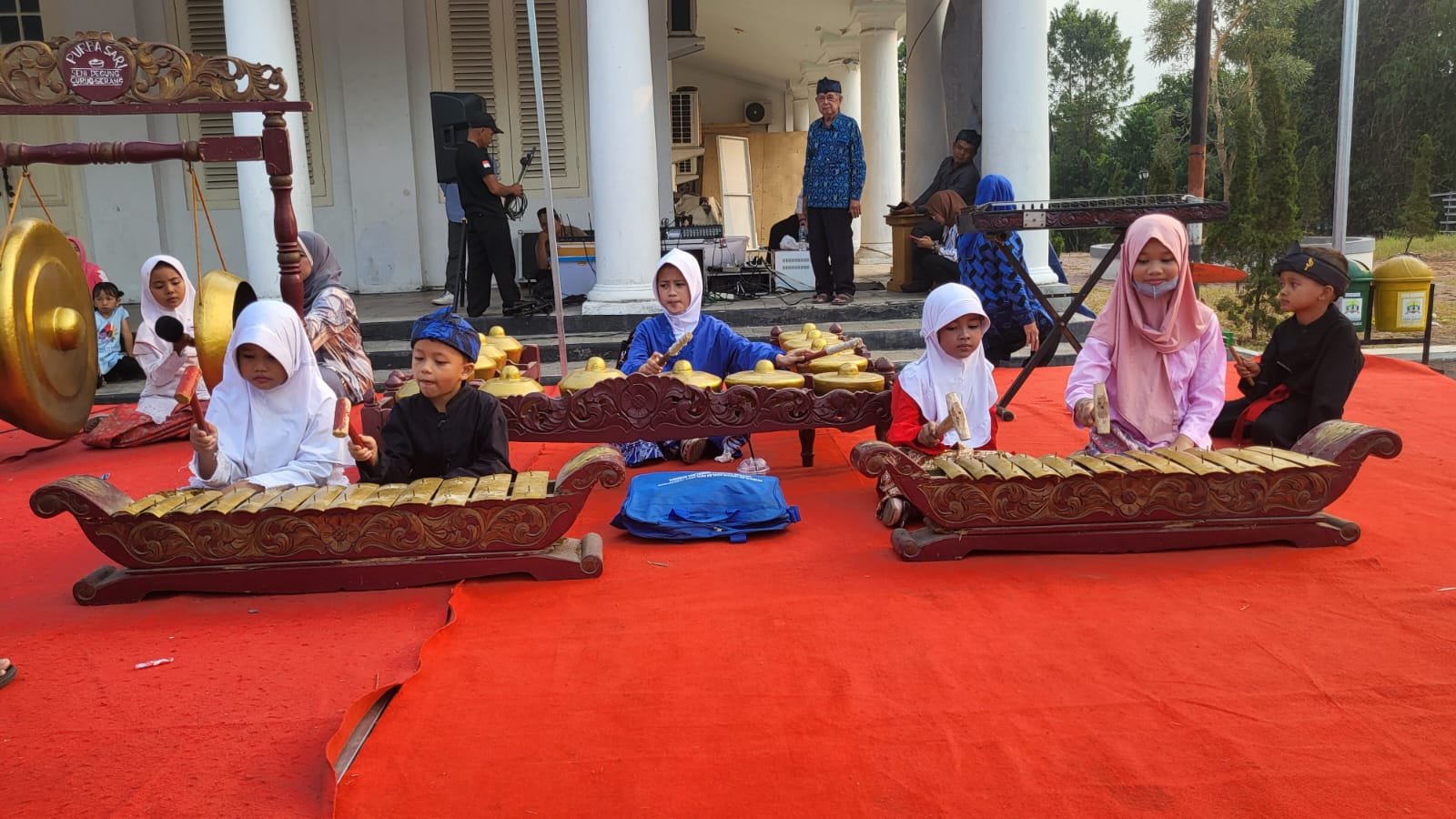 Kota Serang, Sundapost.co.id – Paguyuban Sumedang Larang (PSL) Banten menampilkan seni tradisi Sunda Degung yang dibawakan anak-anak usia sekolah dasar pada acara Rabegan program Paguyuban Pasundan Wilayah Provinsi Banten, di Halaman Gedung Juang 1945 samping Alun-alun Kota Serang, Jumat (27/10/2023. Upaya menanamkan seni tradisi kepada generasi milenial.
