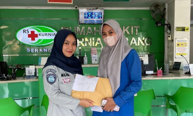 Petugas Jasa Raharja Samsat Kramatwatu, Alia Rahmadhani berkunjung dan sekaligus menjemput tagihan jaminan korban kecelakaan di RS Kurnia Serang pada hari Kamis 2 November 2023, yang sudah dijaminkan sebelumnya oleh PT Jasa Raharja dan bertemu dengan Staff Keuangan RS Kurnia Serang.