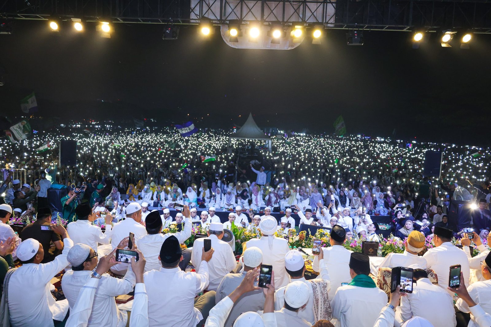 “Malam ini kami sangat berbahagia, kehadiran ulama kami, guru kita semua Habib Syech Bin Abdul Qodir Assegaf. Dimana beliau akan menyampaikan tausyiah, ilmu-ilmu dan doa. Mudah-mudahan doa kita dijabah oleh Allah SWT,” ucap Pilar.