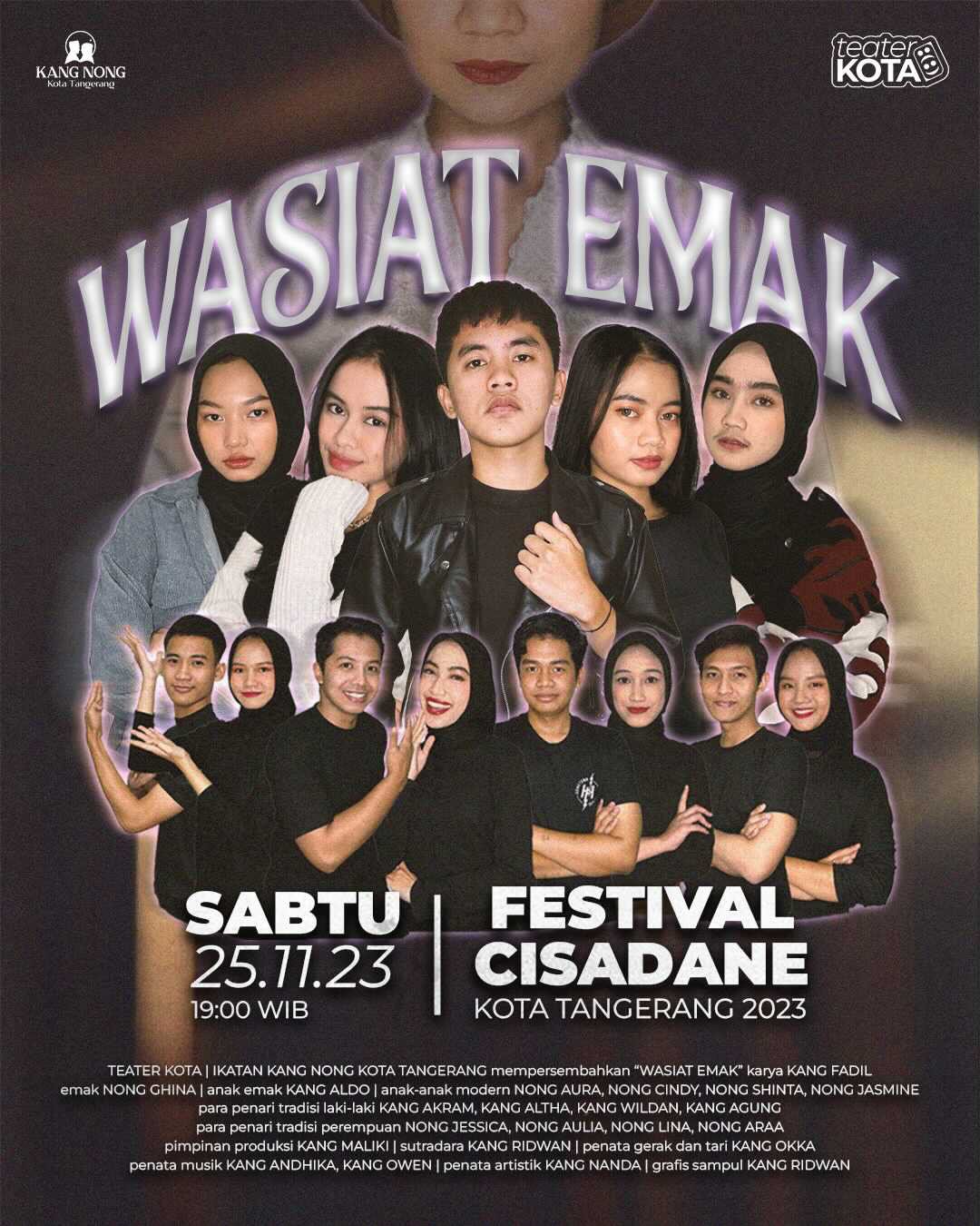 “Teater Kota ini merupakan wadah khusus minat dan bakat di bidang seni pertunjukan (drama) yang diisi oleh anak-anak muda di Ikatan Kang Nong Kota Tangerang. Disuguhkan secara khusus kepada para pengunjung, Teater Kota akan mementaskan drama menarik tentang keresahan generasi muda mengenai fenomena kebudayaan yang saat ini dirasakan,” ujar Sutradara “Wasiat Emak” sekaligus Ketua Ikatan Kang Nong Kota Tangerang, Muhammad Ridwan Himawan, Jumat, (24/11/23).