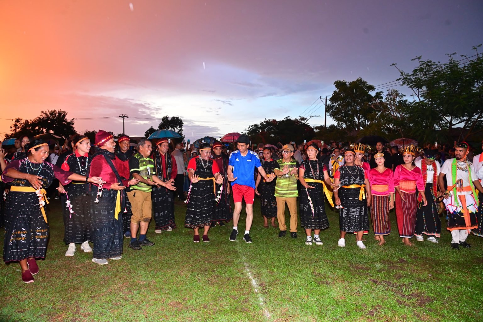 Saat pertandingan selesai, para penari yang mengenakan pakaian motif tenun khas NTT berbaris mengiringi Presiden yang berjalan dari lapangan menuju kendaraan. Melihat hal tersebut, Presiden pun berhenti dan menghampiri para penari dan turut menari bersama.