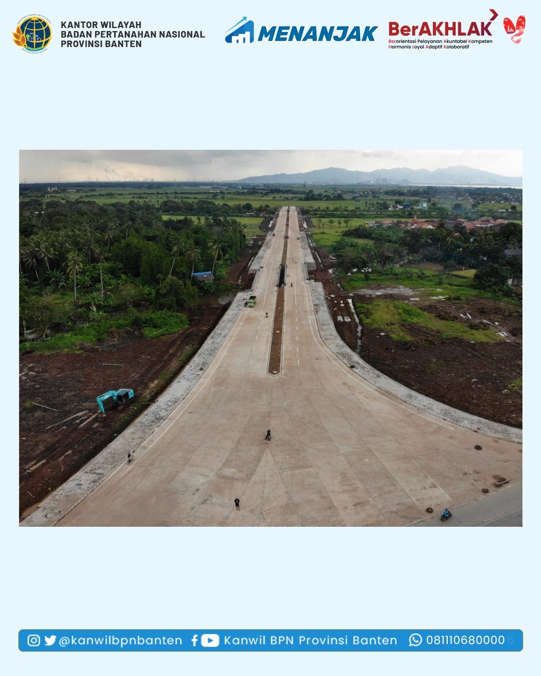 “Alhamdulillah hari ini, kami menyerahkan hasil pengadaan tanah untuk Pembangunan Jalan Ruas Tonjong–Banten Lama ke Dinas PUPR Banten selaku instansi yang memerlukan tanah,” ujar Goyandi.