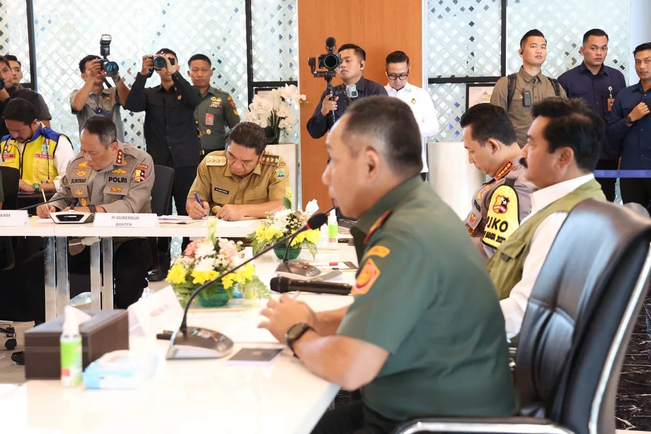 Cilegon, Sundapost.co.id – Penjabat (Pj) Gubernur Banten Al Muktabar ikuti Rapat Persiapan Pengamanan dan Pelayanan Hari Raya Idul Fitri 1445 H/2024 M. Rapat dilaksanakan di Dermaga Eksekutif Sosoro Mall, Pelabuhan Penyeberangan Merak, Kota Cilegon, Senin (1/4/2024). Memastikan pengamanan dan pelayanan Mudik Lebaran 2024 aman dan nyaman agar masyarakat yang mudik selamat sampai tujuan.