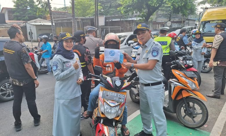 Kota Tangerang, Sundapost.co.id – PT Jasa Raharja Perwakilan Tangerang Cabang Banten bersama Polres Metro Tangerang dan Tim Pembina Samsat Cikokol mengkampanyekan Keselamatan Berlalu Lintas dengan melaksanakan kegiatan Aksi Simpatik bagi pengguna sepeda motor. Kegiatan ini dilaksanakan pada hari Kamis tanggal 16 Mei 2024 pukul 08.00 WIB di Jl. Raya Daan Mogot, tepatnya di dekat Satpas SIM Polres Metro Tangerang Kota, Kelurahan Sukarasa, Kecamatan Tangerang, Kota Tangerang.