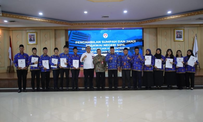 Pengambilan sumpah dan janji 11 PNS ini berdasarkan Keputusan Menteri Pemuda dan Olahraga Republik Indonesia Nomor 163 Tahun 2023 tentang Pengangkatan Pegawai Negeri Sipil di Lingkungan Kementerian Pemuda dan Olahraga.