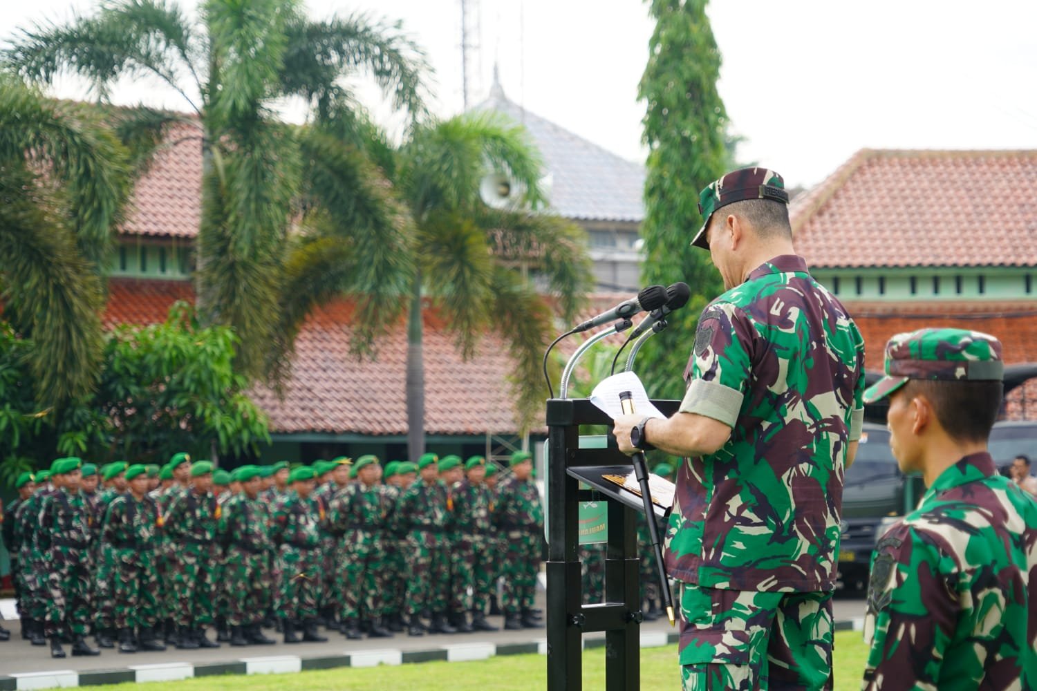 Bertindak selaku inspektur upacara, Komandan Korem (Danrem) 064/MY, Brigjen TNI Fierman Sjafirial Agustus dan sebagai komandan upacara, Perwira Seksi Latihan (Pasilat) Korem 064/MY, Mayor Inf A. H. Mulyana.