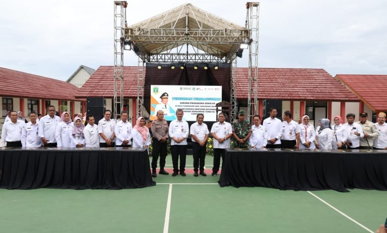 Kota Tangsel, Sundapost.co.id – Penjabat (Pj) Gubernur Banten Al Muktabar meresmikan sejumlah Sarpras Sekolah Khusus (SKh) Negeri 1 Kota Tangerang Selatan (Tangsel), Rabu (7/2/2024). Peresmian dilakukan dengan penandatangan prasasti dan pengguntingan pita.