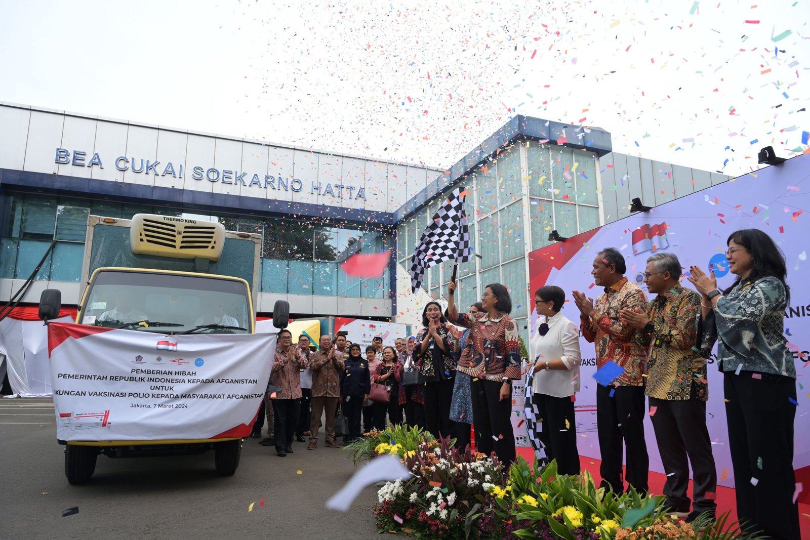 Jakarta, Sundapost.co.id  Pemerintah Indonesia melalui Lembaga Dana Kerja Sama Pembangunan Internasional (LDKPI) mengirimkan bantuan 10 juta dosis vaksin polio bOPV ke Afghanistan. Pelepasan bantuan dilakukan oleh Menlu RI Retno Marsudi dan Menkeu RI Sri Mulyani Indrawati di bandara Soekarno Hatta, Jakarta, Kamis (7/3/2024).