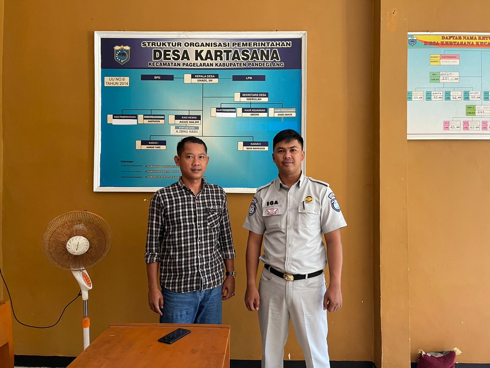 Pandeglang – Petugas Samsat Pandeglang Ega Cahya Pebrian melakukan kunjungan ke Kantor Kelurahan Kartasana Kec Pagelaran Kab.Pandeglang langsung disambut oleh Kepala Desa Uhadi, SH di Kantor Kelurahan Kartasana Kec Pagelaran Kab Pandeglang (18/03/2024). Kunjungan ini dalam rangka sosialisasi pelayanan tentang jaminan asuransi kecelakaan lalu lintas dan sosialisasi program Samsat Digital Nasional (SIGNAL) di wilayah Provinsi Banten.