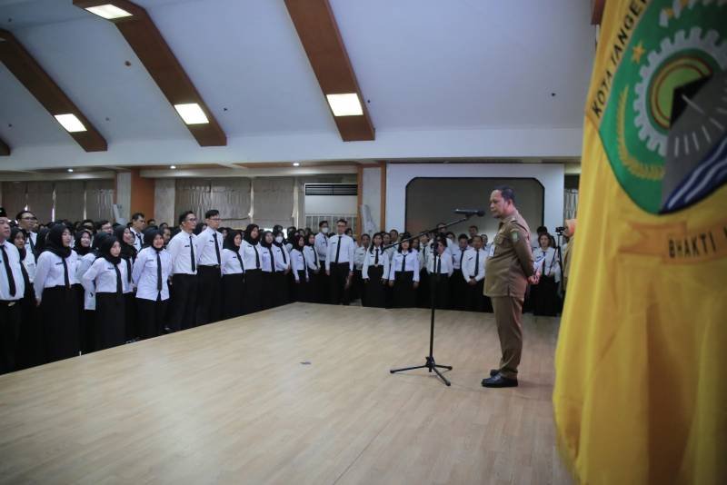 Sundapost.co.id – Penjabat (Pj) Wali Kota Tangerang, Dr. Nurdin, melakukan pengambilan sumpah jabatan fungsional dan penyerahan Surat Keputusan (SK) bagi PPPK formasi tahun 2023 sebanyak 1368 pegawai, sekaligus penyerahan SK kenaikan pangkat periode April 2024 secara simbolis kepada 306 pegawai, yang berlangsung di Aula Al-Amanah Pusat Pemerintahan Kota Tangerang, Senin (1/4).