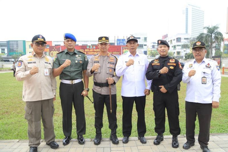 “Dalam kegiatan ini, seluruh pihak saling menetapkan koordinasi antarpetugas, instansi terkait dan stakeholder terlibat. Mengecek kesiapan seluruh pasukan pengamanan,” tegas Zain, usai apel.