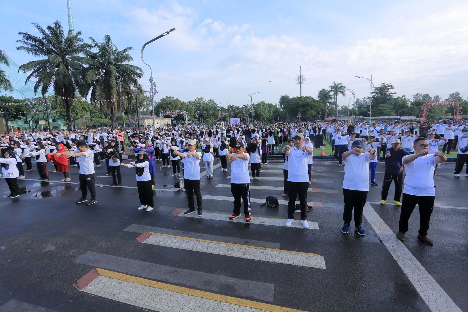Penjabat (PJ) Wali Kota Tangerang, Dr. Nurdin, bersama Kepala Kantor Wilayah Kementerian Agama Provinsi Banten, Dr. H. Nanang Fatchurochman, dan Kepala Kantor Kementerian Agama Kota Tangerang, Samsudin, turut serta mengikuti Senam Sehat Haji bersama 1773 Calon Haji (Calhaj)Kota Tangerang.