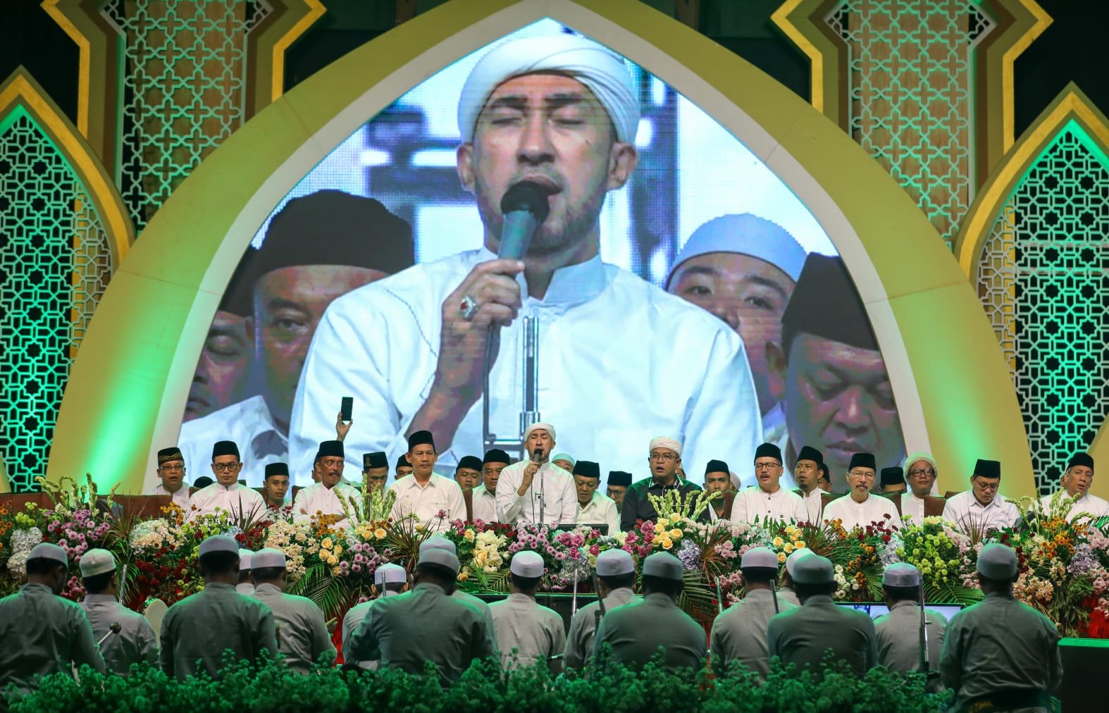 “Semua yang hadir harus bergembira. Gembiranya orang punya iman pasti bergembira seperti malaikat, yaitu menyebar kebaikan dan memberi manfaat untuk orang lain,” tuturnya, kepada hadirin.