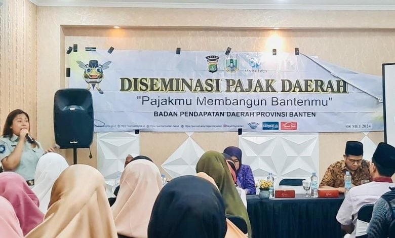 Tangerang – Jasa Raharja Perwakilan Tangerang Cabang Banten bersama Tim Pembina Samsat Provinsi Banten dalam rangka meningkatkan kesadaran Masyarakat dalam membayar PKB (Pajak Kendaraan Bermotor) melakukan giat sosialisasi Diseminasi Pajak Daerah dengan tema “Pajakmu Membangun Bantenmu” yang bertempat di Jl. Raya Bukit Serua No.33 Kecamatan Ciputat, Tangerang Selatan pada hari Kamis 9 Mei 2024. Selaku narasumber mewakili Kepala Perwakilan Jasa Raharja Tangerang Cabang Banten kegiatan sosialisasi ini disampaikan oleh Penanggung Jawab Samsat Induk Ciputat, Shera Mutia, dan yang Kabid.Penagihan dan Penetapan Bapenda Provinsi Banten, dan serta Wakil Ketua DPRD Provinsi Banten, H.Budi Prajogo.