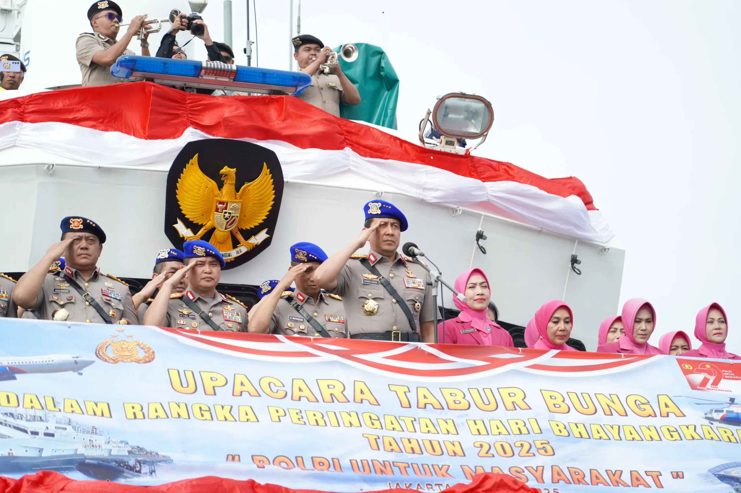 Tanjung Priok, Sundapost.co.id – Dalam rangka memperingati Hari Ulang Tahun Bhayangkara Polri ke-79, Korpolairud Baharkam Polri menyelenggarakan Upacara Tabur Bunga di Laut sebagai bentuk penghormatan atas jasa para pahlawan yang telah gugur dalam menjalankan tugas negara.