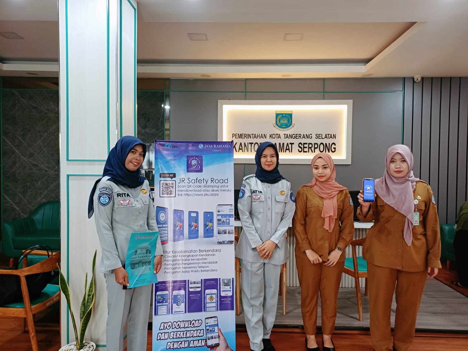 TANGERANG – Jasa Raharja Tangerang yang diwakili Satya Wardhani dan Rita Yunita melakukan sosialisasi penggunaan aplikasi JR Safety Road di Kantor Kecamatan Serpong.