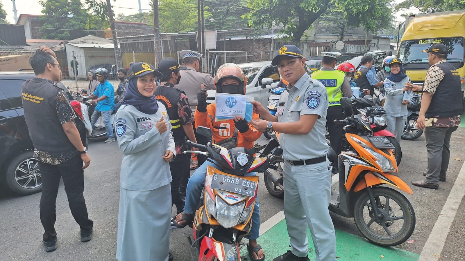 Jasa Raharja Tangerang dan Polres Metro Tangerang Kota Gandeng Tim Pembinaan Samsat Cikokol Apresiasi Pengguna Sepeda Motor yang Tertib saat Razia Pajak Kendaraan BermotorTertib