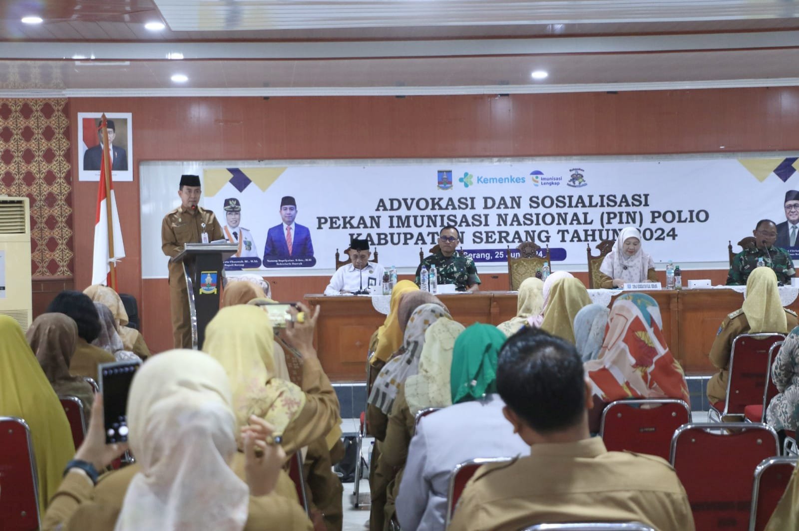 Advokasi dan sosialisasi PIN Polio yang digelar Dinas Kesehatan (Dinkes) dihadiri Kepala Kanwil Kemenag Kabupaten Serang, Muhtadi, unsur TNI dan Polri, perwakila OPD terkait, para camat, para kepala puskesmas, perwakilan rumah sakit daerah dna swasta, Ketua TP PKK Kabupaten Serang Habibah dan stakeholder terkait lainnya.
