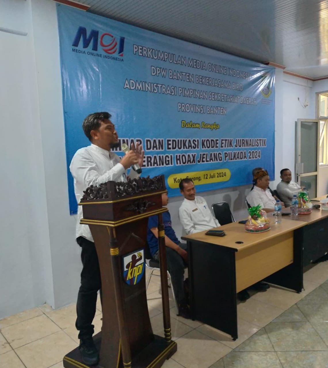 Hal itu mengemuka dalam Seminar dan Edukasi Kode Etik Jurnalis dan Perangi Hoax Jelang Pilkada 2024 kerja sama Biro Administrasi Pimpinan Setda Provinsi Banten dan Media Online Indonesia (MOI) DPW Provinsi Banten. Kegiatan yang dihadiri oleh perwakilan MOI dari delapan Kabupaten/Kota se-Provinsi Banten itu dilaksanakan di Gedung KNPI Provinsi Banten, KP3B Curug, Kota Serang, Jumat (12/7/2024).