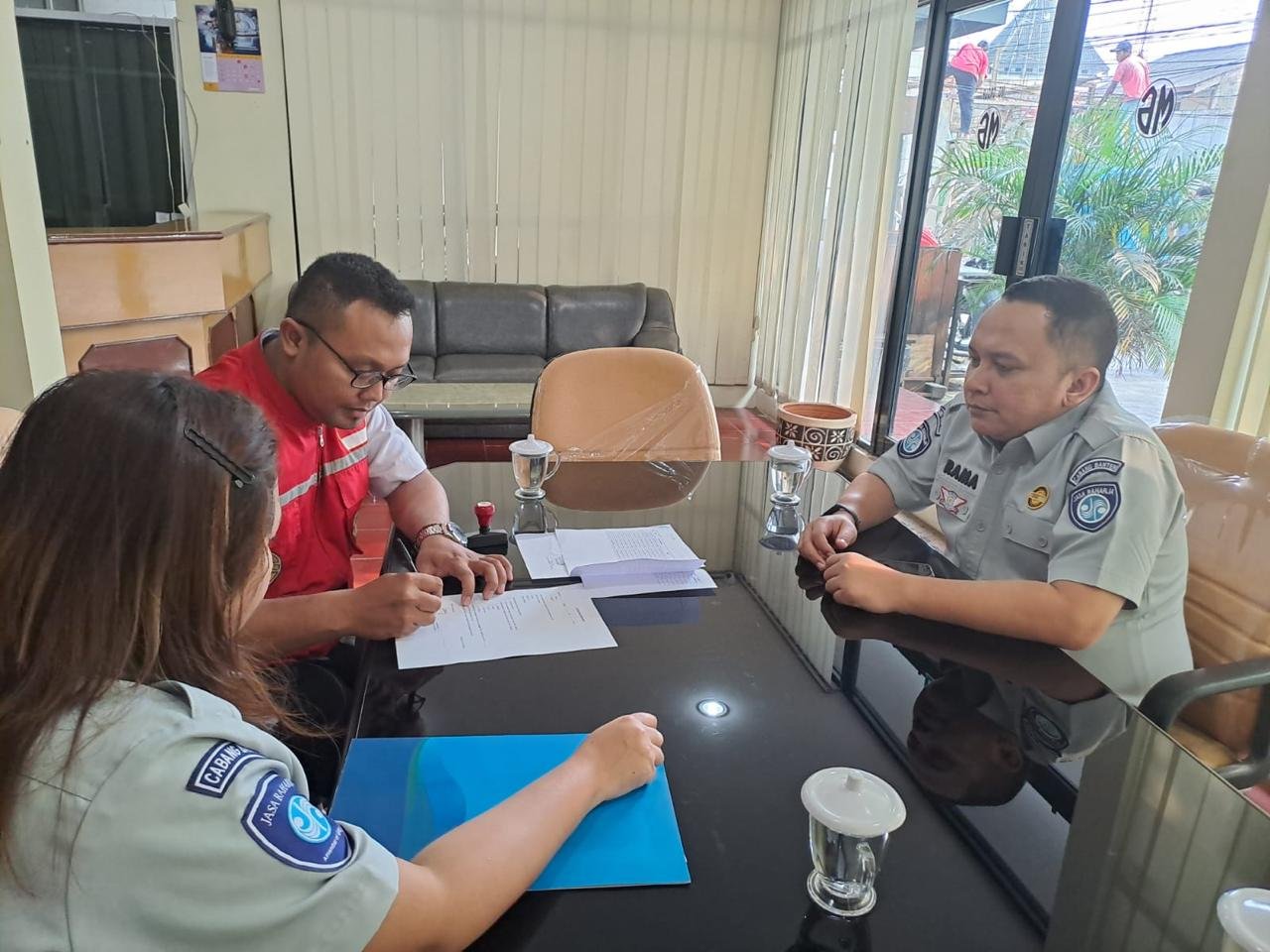 Tangerang, Sundapost.co.id– Penanggung Jawab Jasa Raharja Samsat Ciputat, Shera Mutia dan Petugas Gerai Samsat Bintaro, Rama Adhitya melakukan kegiatan sosialisasi dan silaturahmi ke salah satu Perusahaan di wilayah Tangerang Selatan yaitu PT Manunggal Jaya Makmur. Kedatangan Jasa Raharja disambut baik oleh Supervisor Bapak Deni Permana.