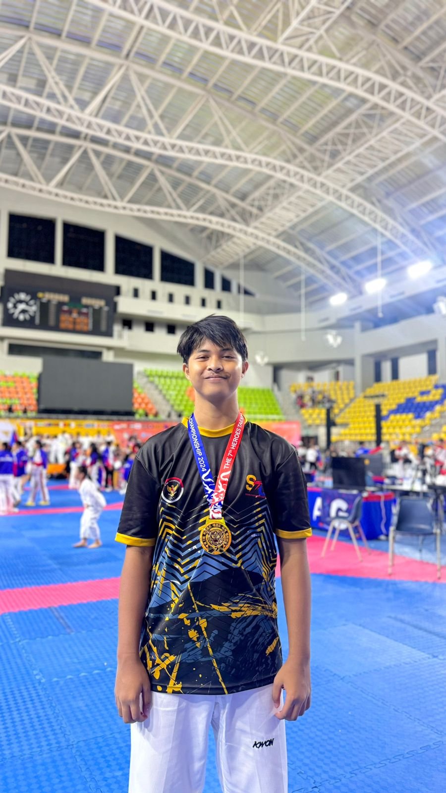 Caption Foto: Mahardika Naufal Putra Atlet Taekwondo asal Kota Serang berhasil meraih emas di ajang The 7 Heroes Taekwondo Internasional Chanpionship, di Bangkok, Thailand. (One)