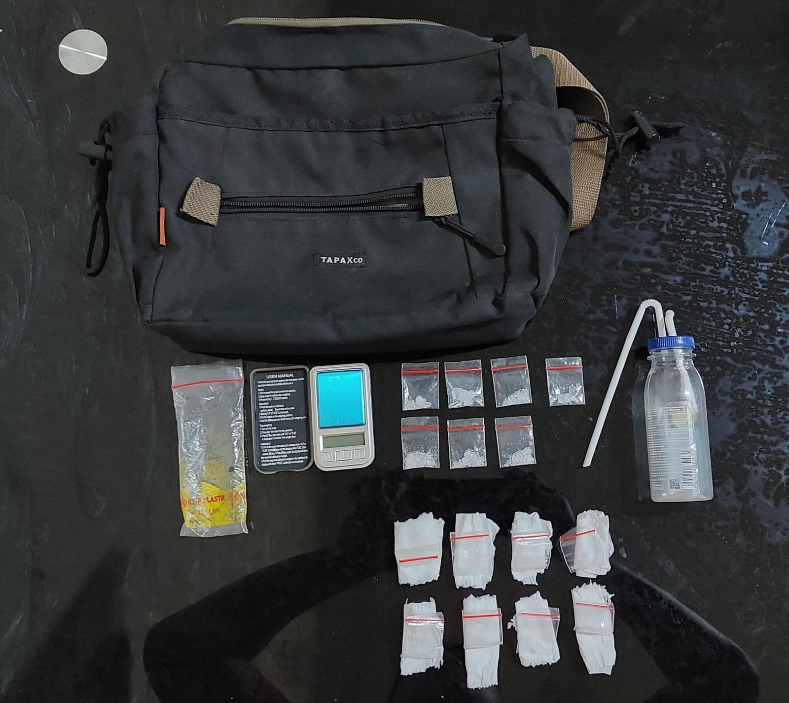 “Pelaku TB (36) berhasil diamankan di sebuah kontrakan berikut barang bukti 1 (satu) unit handphone merk Xiaomi warna silver, 1 (satu) buah tas selempang warna hitam merk TAPAXco, 1 (satu) bungkus plastik klip bening ukuran sedang berisikan 15 (lima belas) bungkus plastik klip bening berisikan kristal putih diduga Narkotika golongan I jenis shabu dengan berat brutto : 3.62 gram, 1 (satu) unit timbangan digital, seperangkat alat hisap shabu / bong,”