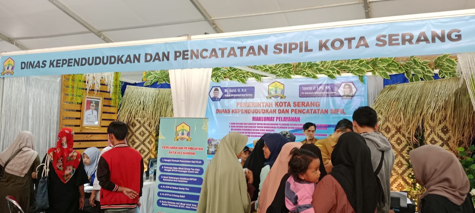 Dihari pertama pembukaan stand pelayanan Adminduk, Antuisasme masyarakat/warga serang sangat baik, momentum inilah yang biasanya dinantikan oleh masyarakat karena selain antrian yang tidak terlalu padat lokasinyapun mudah dijangkau karena berada di tengah kota (Alun-alun Barat Kota Serang).
