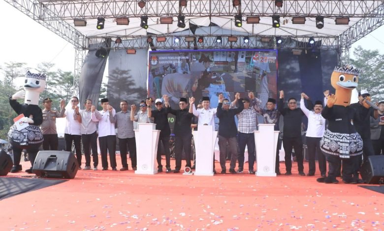 Serang, Sundapost.co.id – Komisi Pemilihan Umum (KPU) Kabupaten Serang resmi meluncurkan atau Launching Maskot Dama Dami atau Datang Bersama Datang Memilih dan Jingle Pemilihan Bupati-Wakil Bupati (Pilbup-Wabup) Serang Tahun 2024 di Alun-alun Kecamatan Tunjung teja pada Rabu, 19 Juni 2024. KPU menargetkan, 70 persen lebih partisipasi pemilih pada Pemilihan Kepala Daerah (Pilkada) Serentak 2024 di Kabupaten Serang.