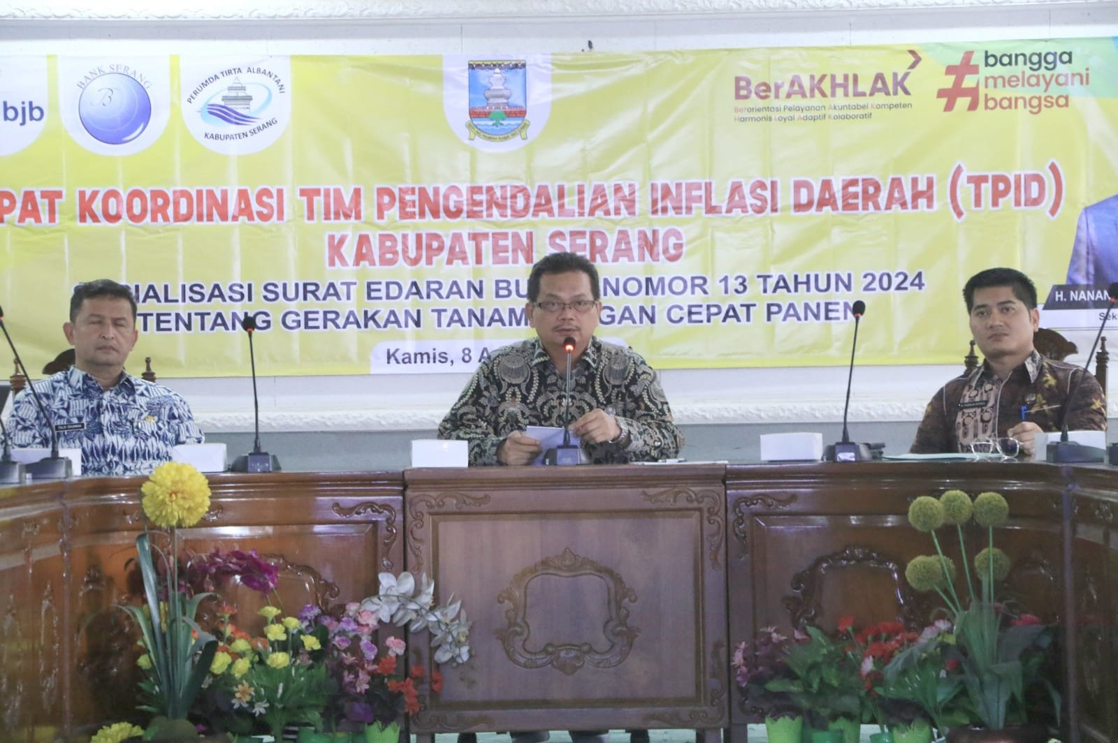 Hal itu disampaikan Asisten Daerah (Asda) II BIdang Perekonomian dan Pembangunan Kabupaten Serang, Febrianto sesaat setelah membuka Rapat Koordinasi Tim Pengendalian Inflasi Daerah (TPID) Kabupaten Serang Sosialisasi Surat Edaran Bupati Nomor 13 Tahun 2024 tentang Gerakan Tanam Pangan Cepat Panen di Aula KH. Syam’un pada Kamis, 8 Agustus 2024.