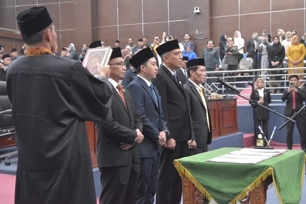 Kota Serang, Sundapost.co.id – Empat pimpinan Dewan Perwakilan Rakyat Daerah (DPRD) Kota Serang resmi dilantik. Pelantikan tersebut dilakukan saat Rapat Paripurna pengambilan sumpah jabatan pimpinan periode 2024-2029 di Gedung DPRD Kota Serang, Jumat (27/9/2024).