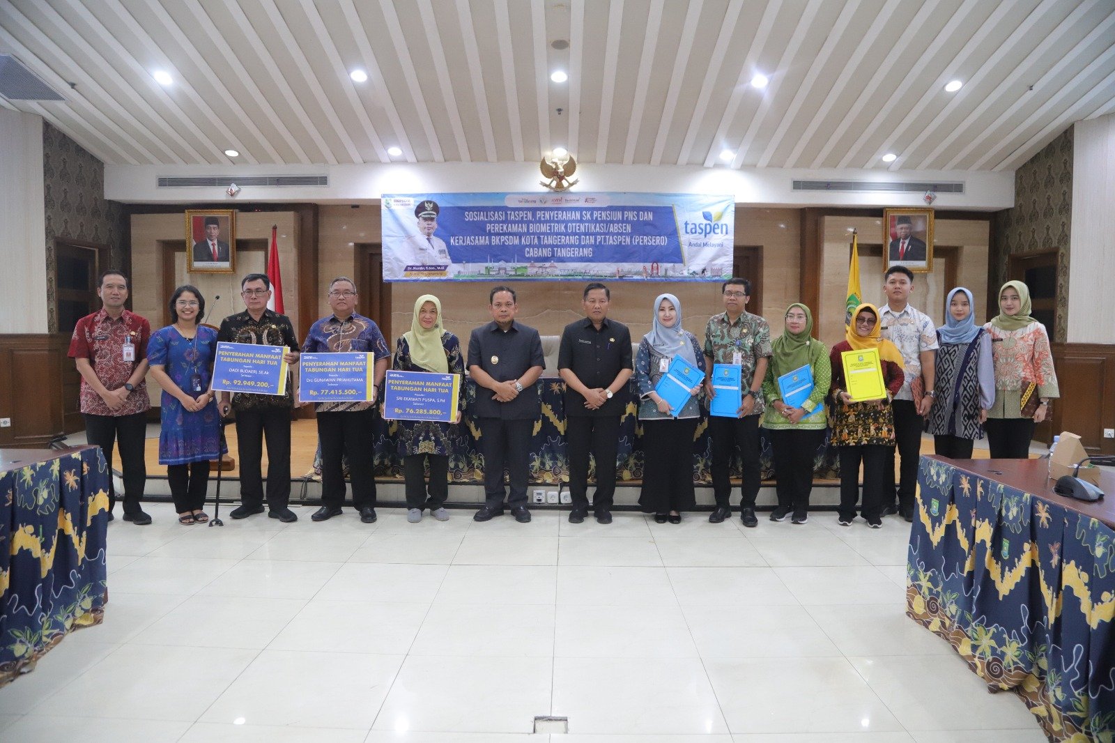 Penjabat (Pj) Wali Kota Tangerang Dr. Nurdin didampingi oleh Sekretaris Daerah Kota Tangerang Herman Suwarman menyerahkan langsung SK Purnatugas kepada para ASN yang memasuki masa pensiun periode November 2024 hingga Januari 2025.