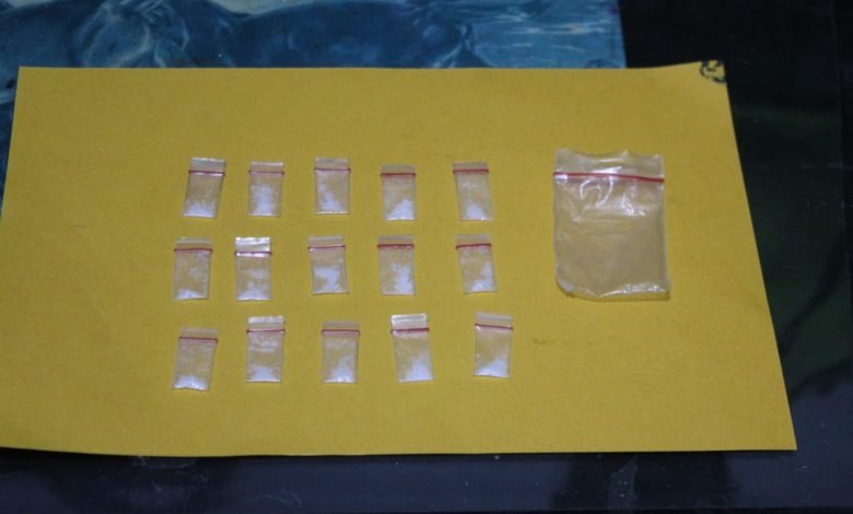 Selanjutnya dilakukan penggeledahan dan menemukan barang bukti berupa 15 paket plastik klip kecil yang berisikan kristal putih diduga narkotika jenis shabu.
