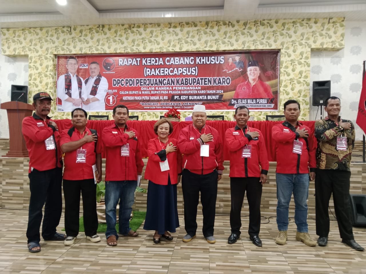 Kader PDI Perjuangan Hakim Torong, Ronald Abdi Negara Sitepu , Sekretaris DPD Relawan Padamu Negeri Sumut Daulat Solin , Kepala Badan Bantuan Hukum/ Advokasi DPC PDI Perjuangan Kab Karo Rina Ateta Munthe Advokat, Kepala Badan Saksi Pemilu Nasional ( BSPN) PDI Perjuangan Kabupaten Karo Imanuel Elihu Tarigan, SH, Kepala Sekretariat DPC PDI-P Karo Rena Ketaren.