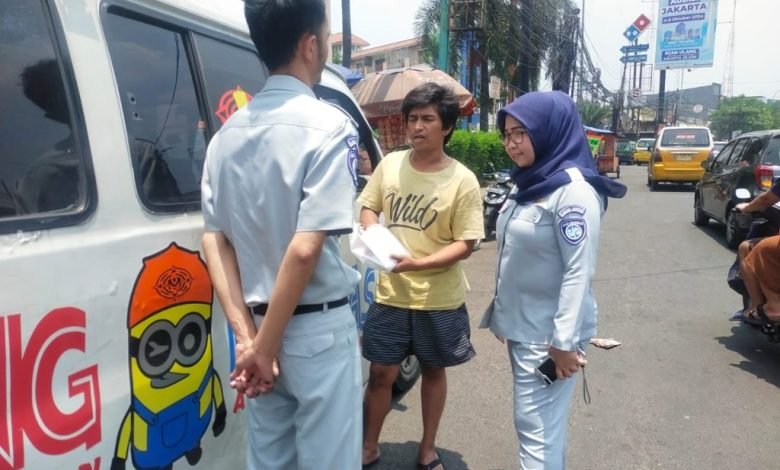 Niskar, sedang melaksanakan upaya pengumpulan Iuran Wajib Kendaraan Bermotor Umum (IWKBU) di wilayah Ciledug, Selasa (14/10/2024).