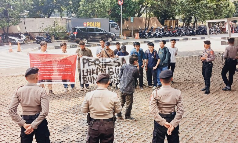 Aksi unjuk rasa digelar di gedung KPK RI dan kantor Kejaksaan Agung (Kejagung) RI pada Selasa (22/10/2024).