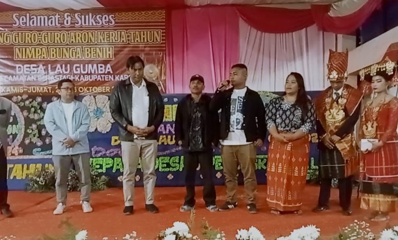 BERASTAGI KARO, Sundapost.co.id Pasangan Calon (Paslon) Bupati dan Wakil Bupati Karo nomor urut 3 yang diwakili Onasis Sitepu hadir Kerja Tahun Guro Guro Aron Nimpa Bunga Benih,Jumat (25/10/2024) di Desa Lau Gumba Kecamatan Berastagi Kabupaten Karo Sumatera Utara.