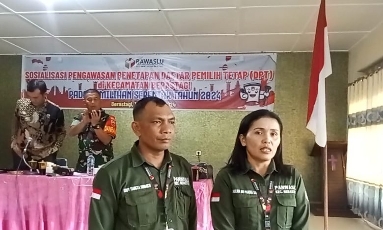 BERASTAGI KARO, Sundapost.co.id – Badan Pengawas Pemilu (Bawaslu) Kabupaten Karo melalui Panitia Pengawas Pemilu (Panwaslu) Kecamatan Berastagi menggelar sosialisasi pengawasan Penetapan Daftar Pemilih (DPT)di Kecamatan Berastagi pada pemilihan serentak Bupati dan Wakil Bupati tahun 2024,Kamis (12/09/2024) sekira pukul 09.00 Wib sampai dengan selesai di Gedung KWK GBKP Jalan Udara Kelurahan Gundaling II Kecamatan Berastagi Kabupaten Karo Sumatera Utara.