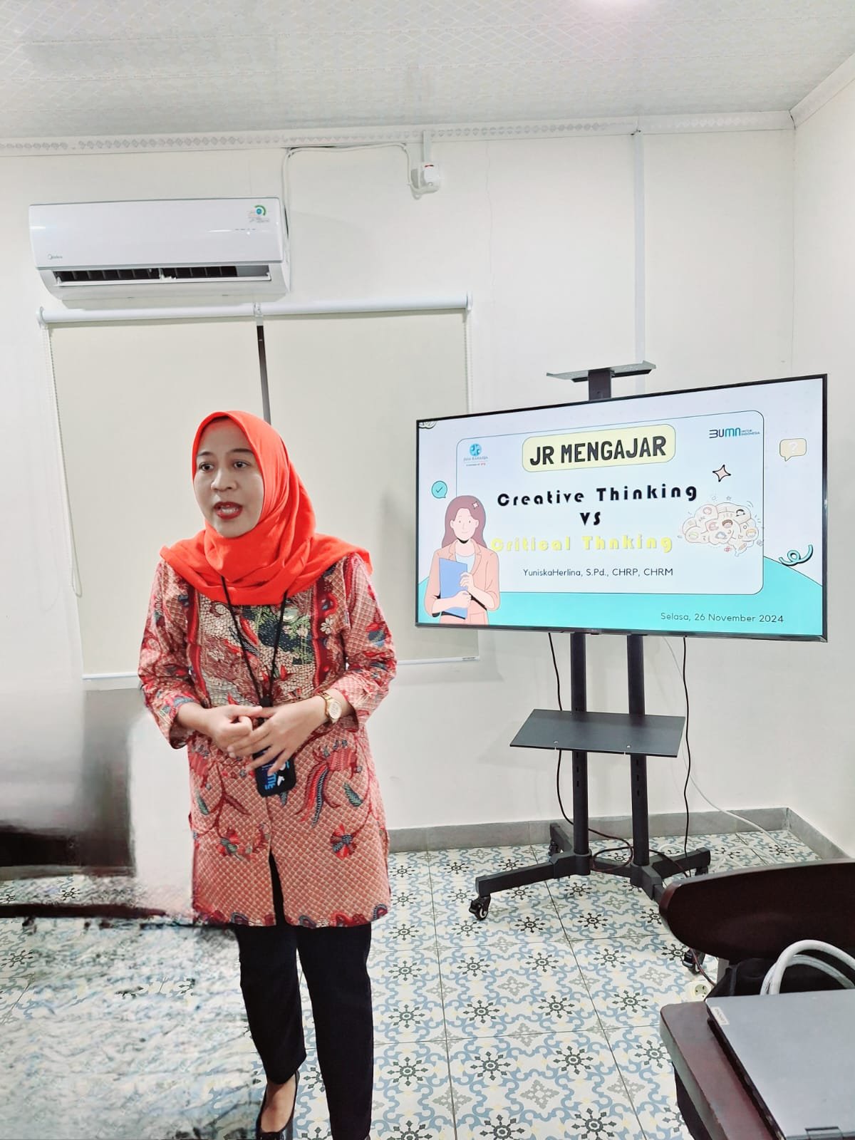 BANTEN, Sundapost.co.id – Insan Jasa Raharja, Yuniska Herlina, S.Pd, CHRP, CHRM memberikan tips bagaimana menjadi pribadi kreatif dan kritis bagi mahasiswa  dalam program Jasa Raharja Mengajar. Dalam materinya, Yuniska menyampaikan bahwa setiap individu hendaknya mengasah kemampuan berfikir kreatif dan kritis agar dapat bertahan di era globalisasi.
