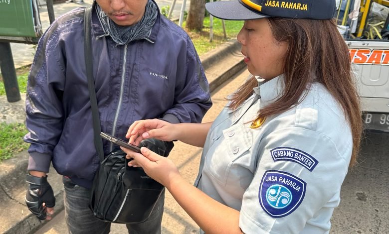 Tangerang – Petugas Jasa Raharja Perwakilan Tangerang, Samsat Ciputat Shera Mutia melakukan sosialisasi penggunaan aplikasi SIGNAL kepada pemilik kendaraan bermotor. Kegiatan ini bertujuan untuk mensosialisasikan UU nomor 22 Pasal 74 Tahun 2009 tentang Lalu Lintas Angkutan Jalan dan Sosialisasi tentang cara penggunaan aplikasi SIGNAL (Samsat Digital Nasional) guna permudah pemilik kendaraan dalam melakukan kewajibannya dalam membayar pajak kendaraan bermotor.
