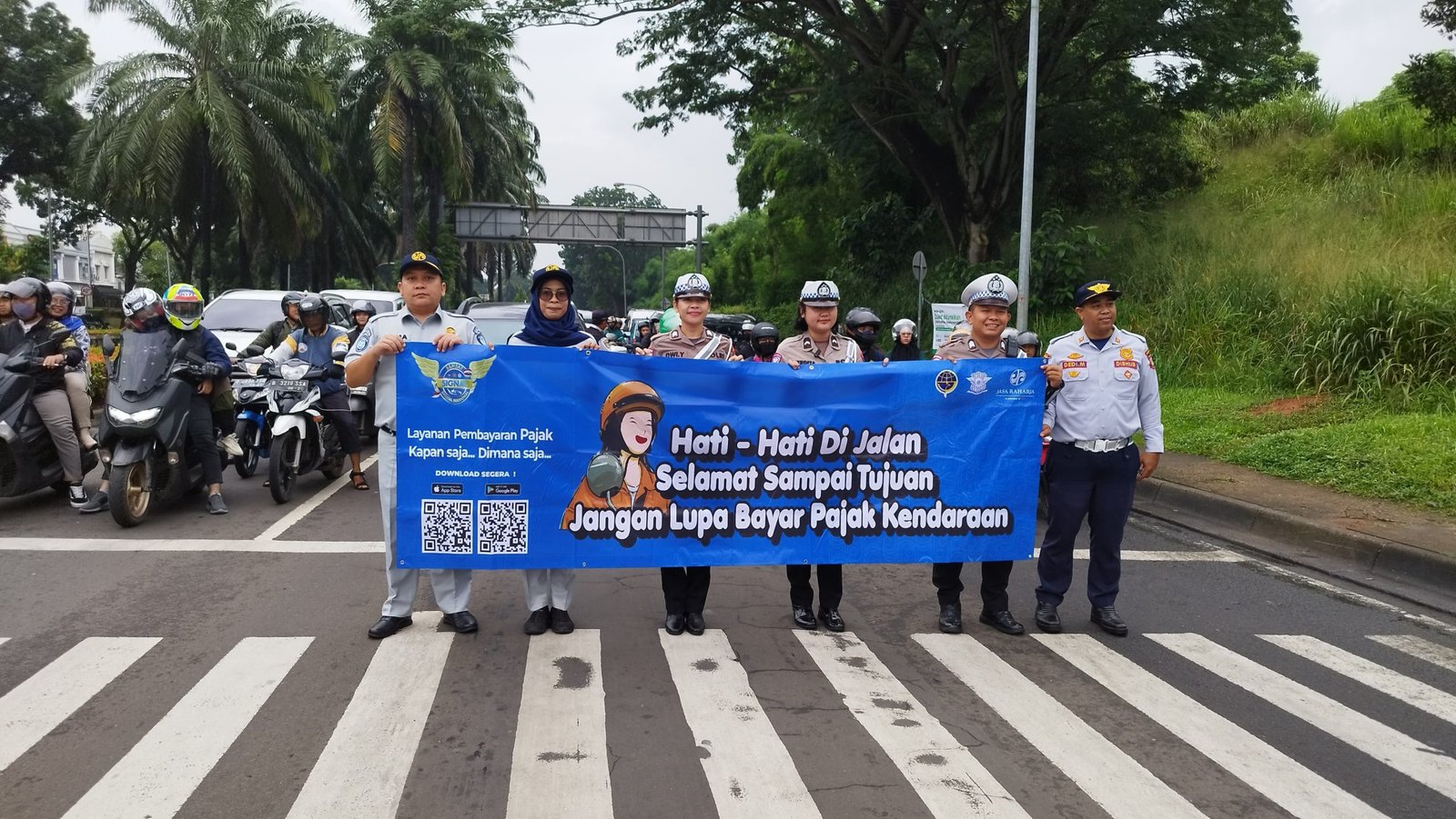 Tangerang, 7 Februari 2025 – PT Jasa Raharja Perwakilan Tangerang Cabang Banten bersama Polres Tangerang Selatan dan Dinas Perhubungan Kota Tangerang Selatan menggelar Aksi Simpatik bagi pengguna sepeda motor sebagai bagian dari kampanye keselamatan berlalu lintas. Kegiatan ini dilaksanakan pada pukul 07.30 WIB di Jl. Promoter Lengkong Gudang Timur, Kecamatan Serpong, tepatnya di persimpangan Traffic Light (Lampu Lalu Lintas) Presisi Kota Tangerang Selatan.