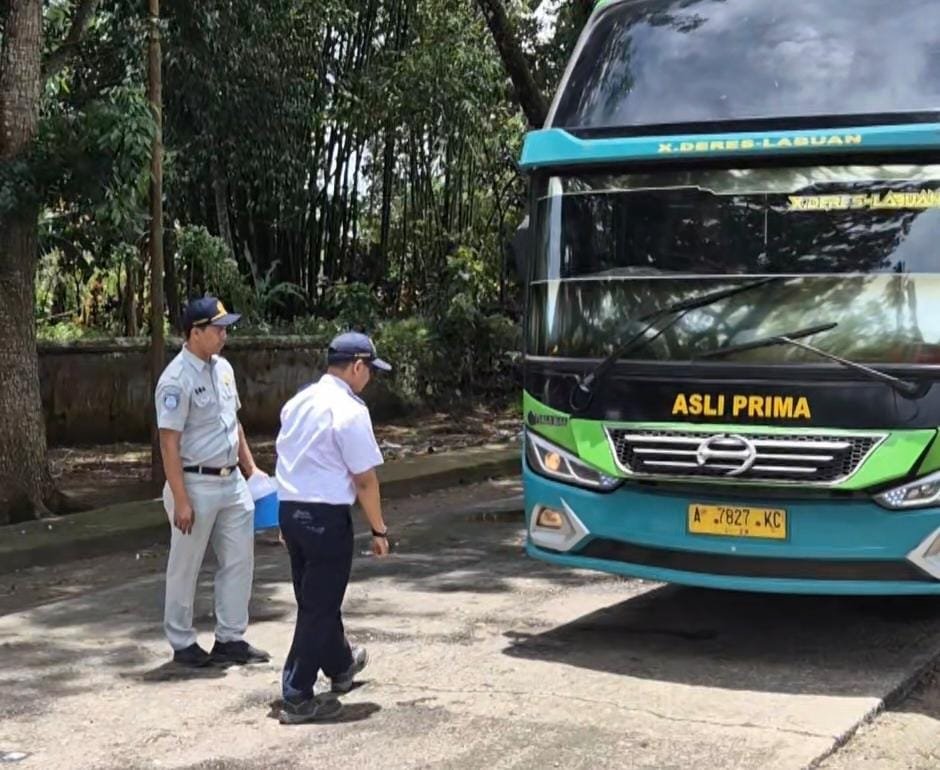 Pandeglang, Sundapost.co.id – Jasa Raharja Kantor Wilayah Provinsi Banten Yang diwakili oleh PA Samsat Pandeglang , Ega Cahya Pebrian melakukan rampchek bus angkutan umum bersama mitra BPTD dan Dishub di terminal labuan pandeglang banten.